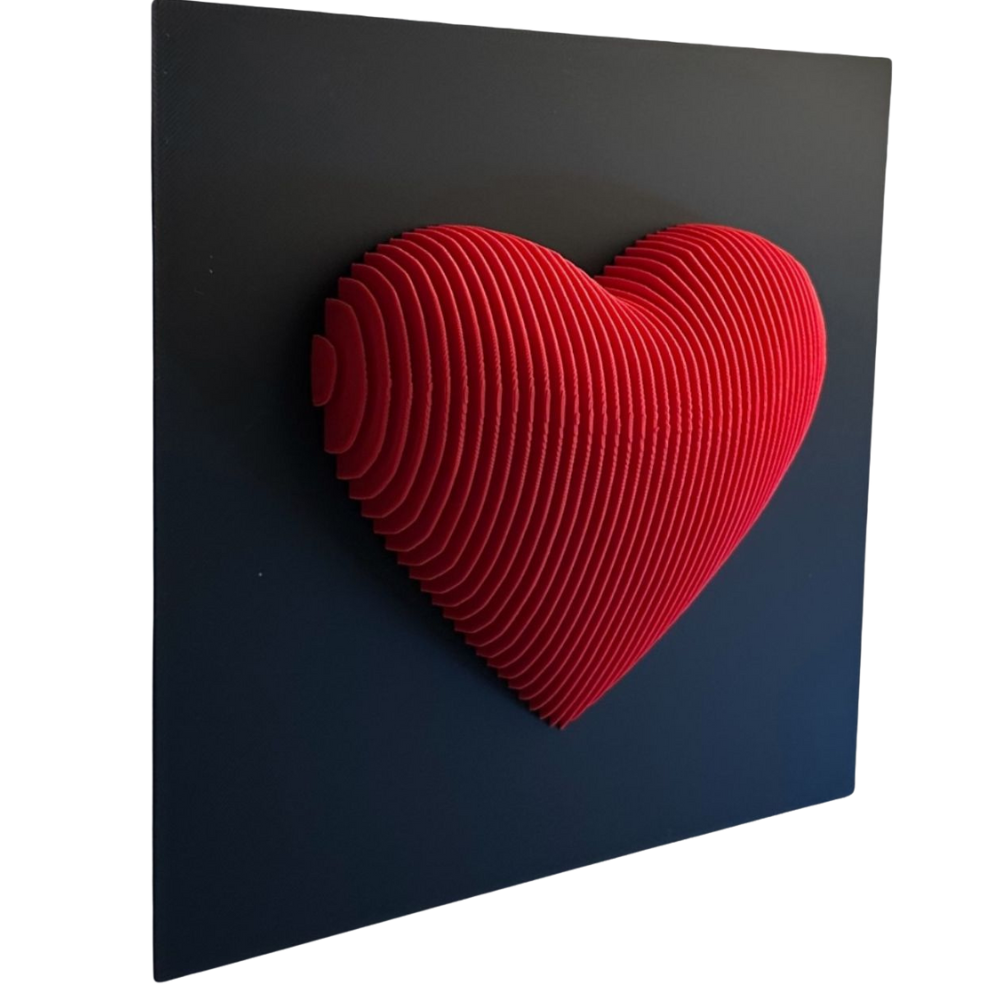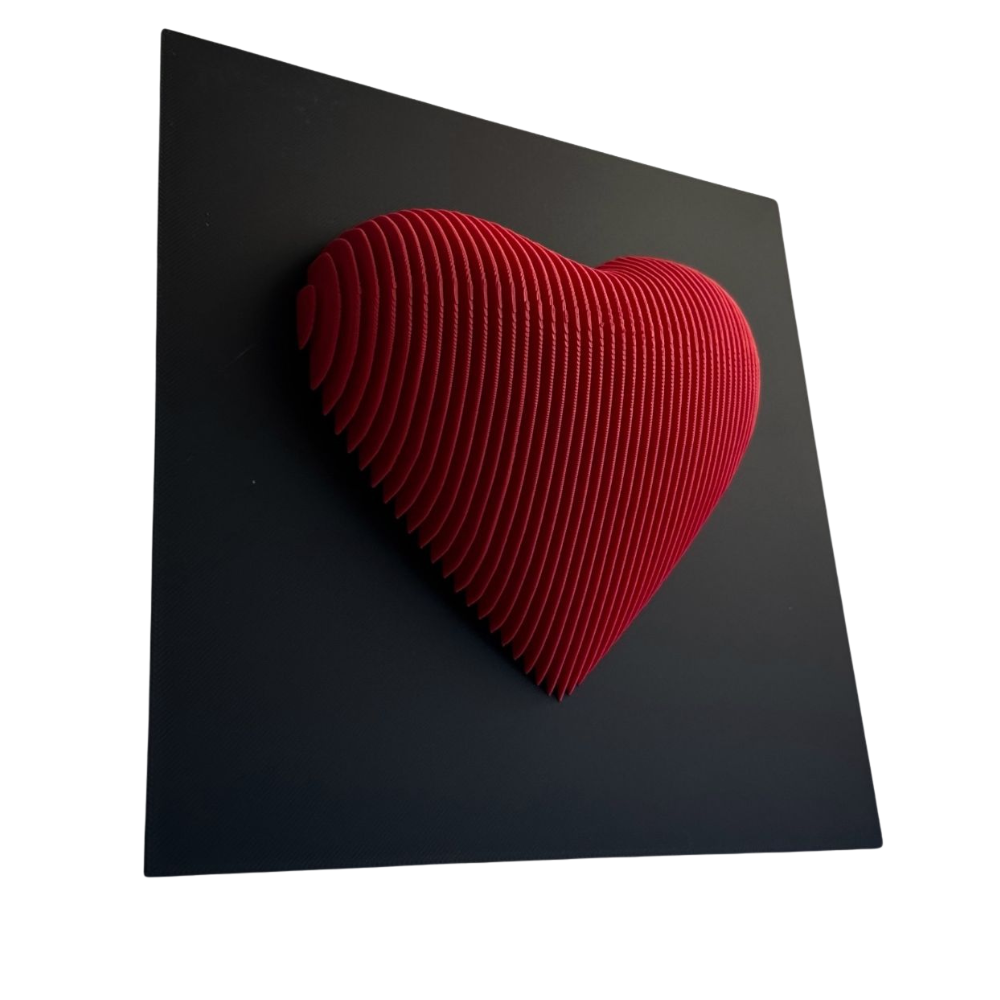 Add a touch of love and modern elegance to your décor with this 3D printed heart wall sculpture. Featuring a layered geometric design in vibrant red, mounted on a sleek black base, this piece makes a perfect wall accent for bedrooms, living spaces, or as a thoughtful gift for Valentine’s Day, anniversaries, or weddings. Crafted from high-quality PLA filament, it is lightweight, durable, and eco-friendly.