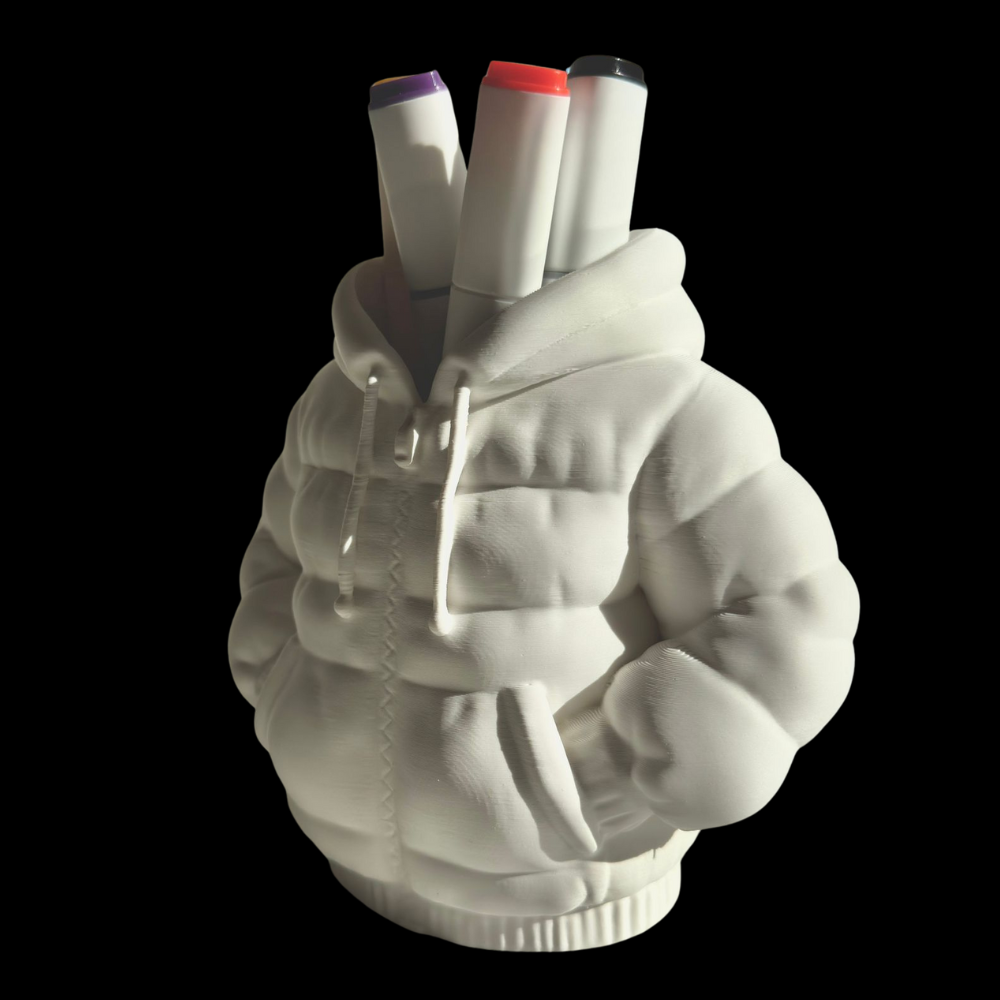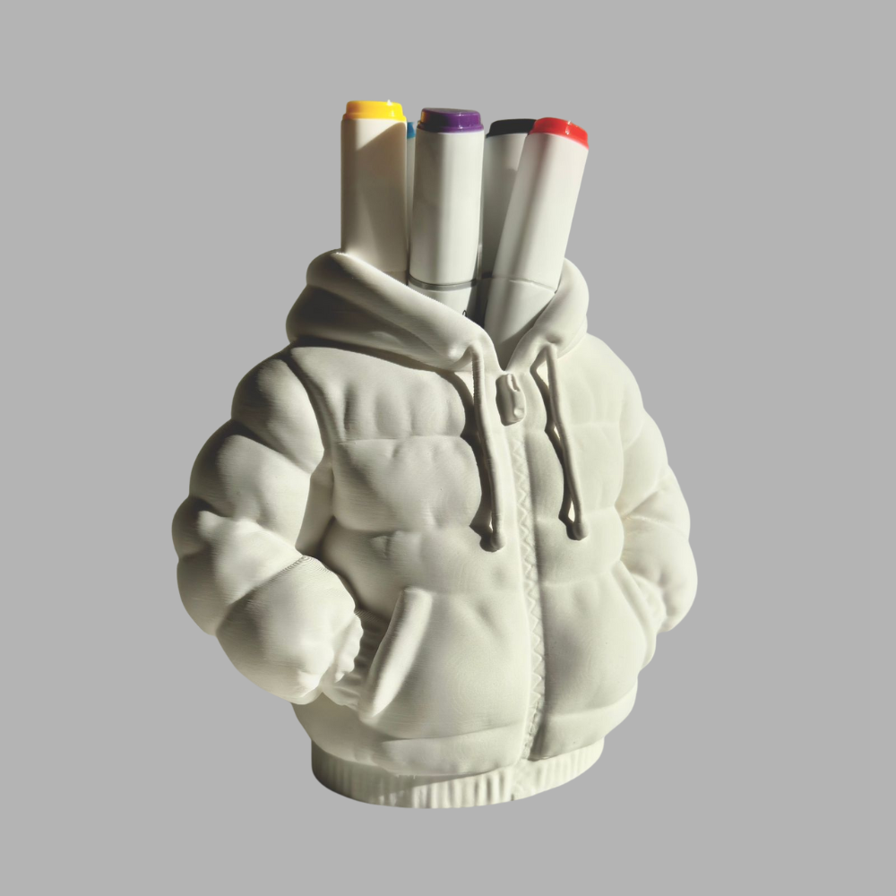 Bring style and functionality to your desk with this unique 3D Printed Hoodie Pen Holder. Designed in the shape of a cozy puffer hoodie, this pen holder adds a trendy touch while keeping your stationery organized. Made with durable, high-quality 3D printed material, it’s lightweight yet sturdy, perfect for pens, markers, or even as a quirky decorative piece. A great choice for students, office desks, or gifting.