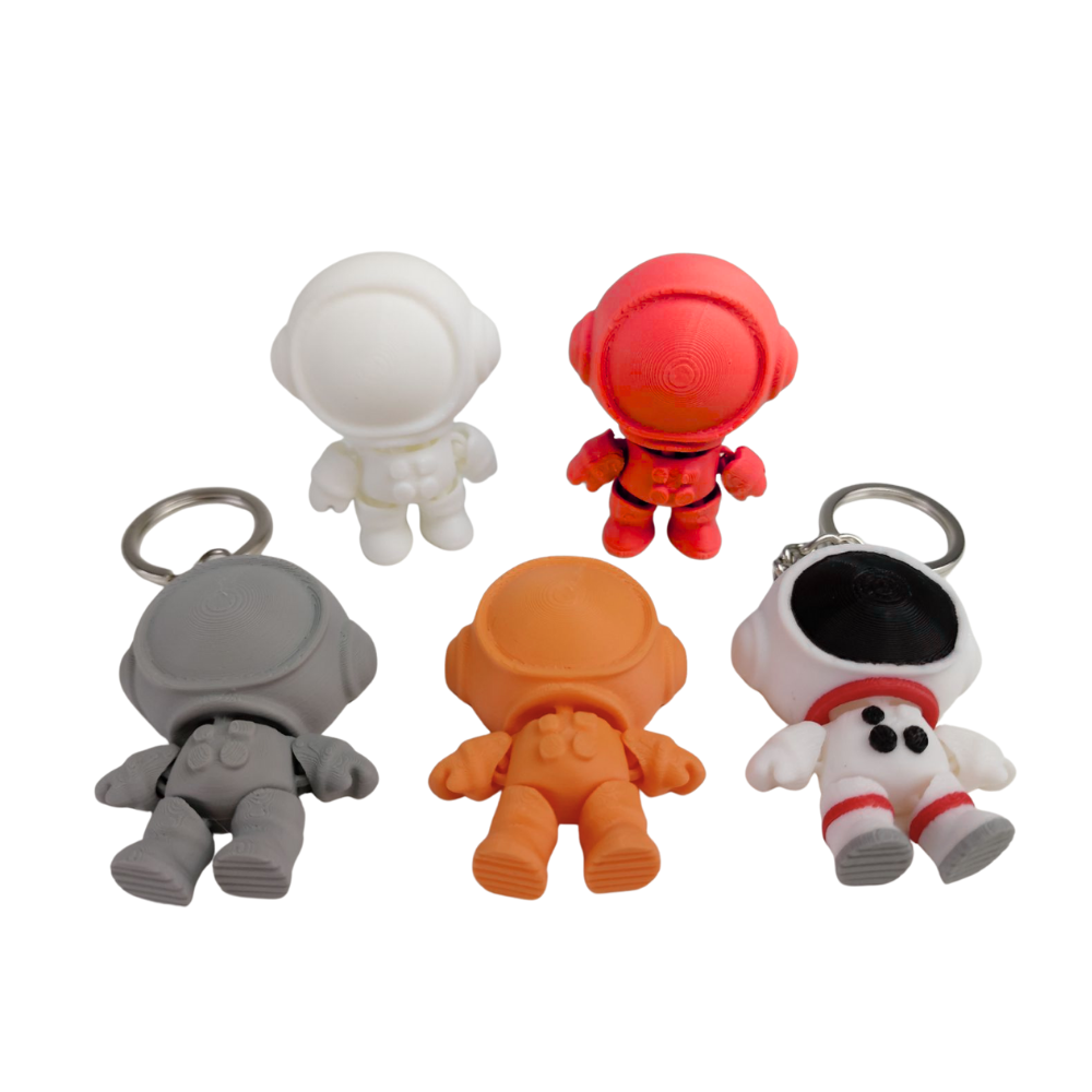 Colorful 3D printed astronaut keychains, lightweight and perfect for space lovers.