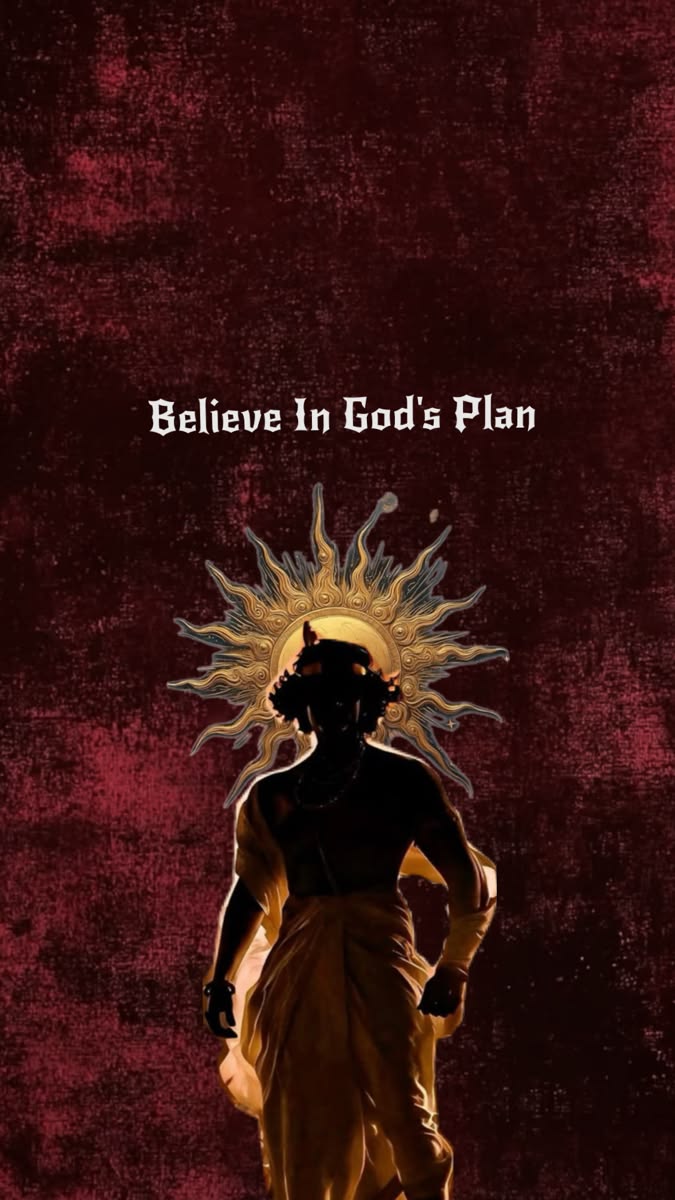 faith and positivity to your space with this powerful “Believe in God’s Plan” metal poster. Featuring a striking silhouette of a divine figure with radiant sunburst detailing against a deep textured red background, this artwork symbolizes strength, trust, and spiritual guidance.