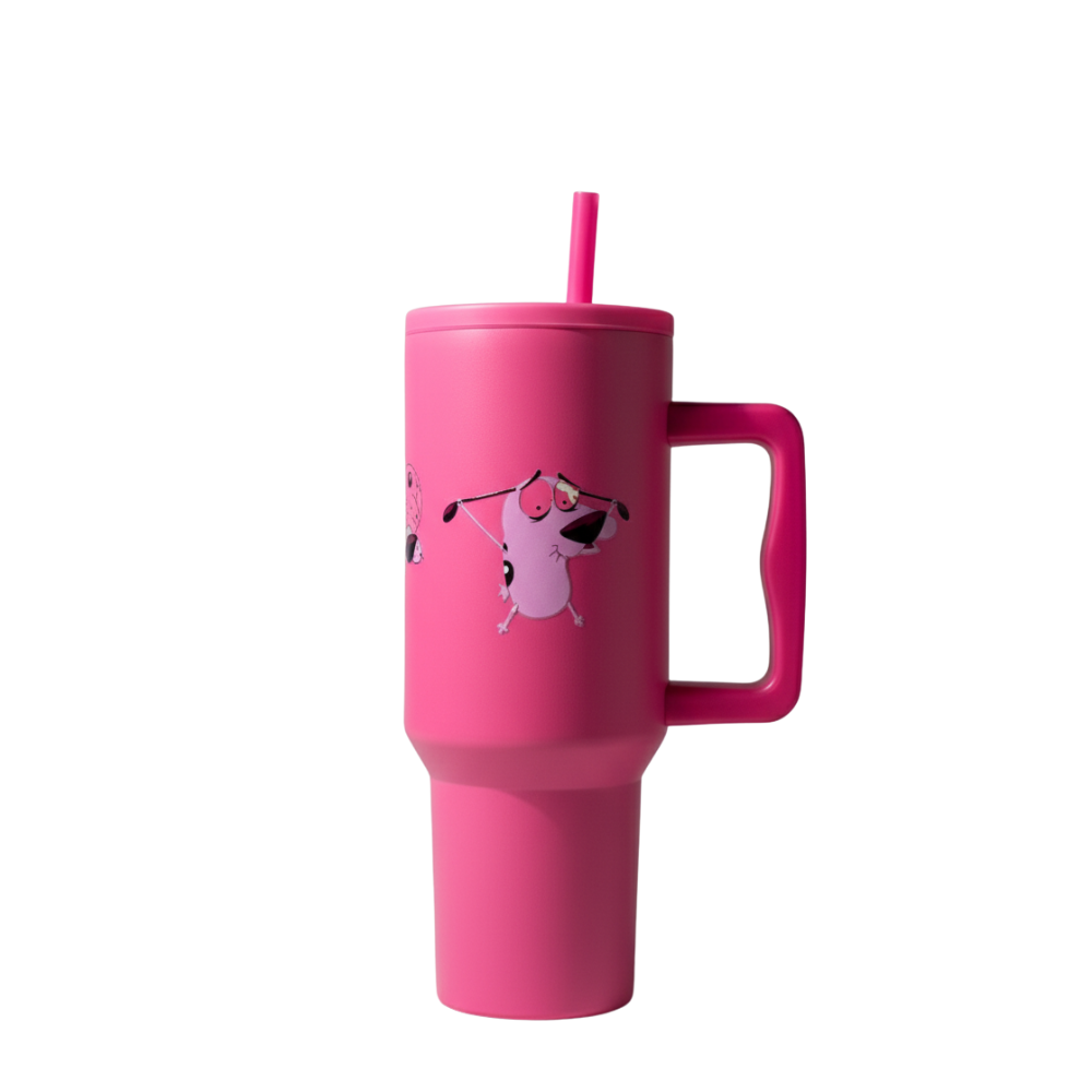 Step into nostalgia with this Courage the Cowardly Dog Pink Matte Tumbler!