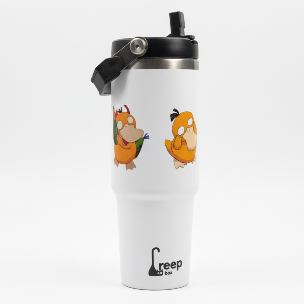 Embrace your inner quirk with this double-walled, vacuum-insulated tumbler from Creep Box. This durable stainless steel cup features two charmingly confused Psyduck designs, perfect for any Pokémon fan who appreciates a good migraine… or a perfectly chilled drink. The secure lid and pop-up straw make it a practical and fun companion for your daily caffeine fix or hydration on the go.