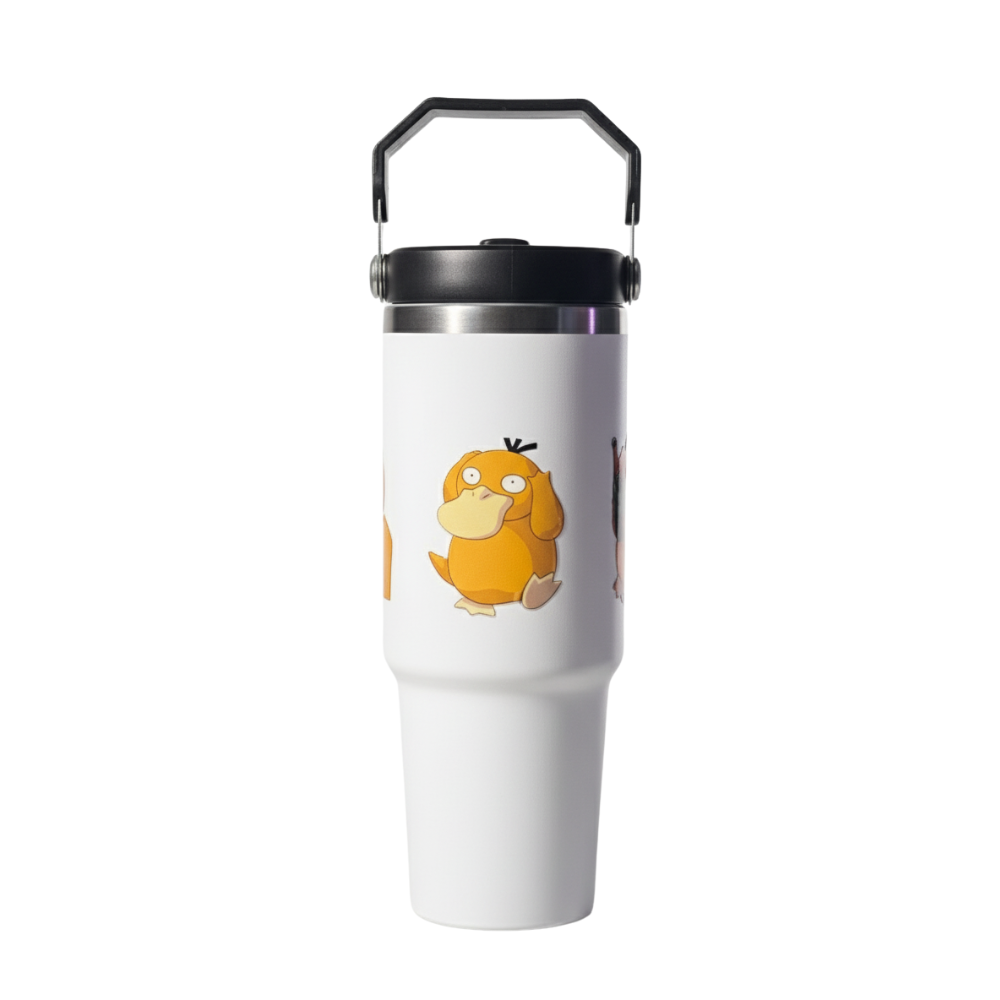 This durable stainless steel cup features two charmingly confused Psyduck designs, perfect for any Pokémon fan who appreciates a good migraine… or a perfectly chilled drink