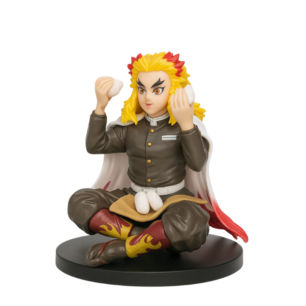 This Rengoku Sitting Figure beautifully captures the vibrant and powerful personality of Kyojuro Rengoku, the Flame Hashira from Demon Slayer: Kimetsu no Yaiba. Sculpted in a charming sitting pose with rice balls in hand, the figure highlights his cheerful yet strong character.