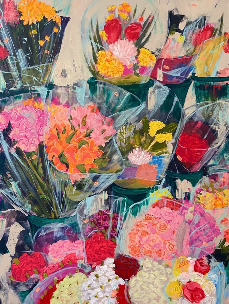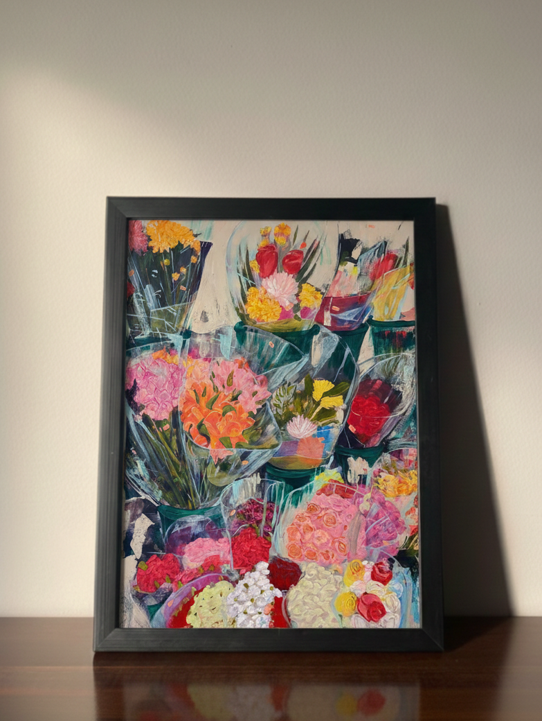 Brighten up your space with this stunning metal poster featuring a vivid, hand-painted style floral composition inspired by a bustling flower market. Bursting with lively colors, layered textures, and expressive brush strokes, this artwork brings warmth, joy, and artistic flair to any room.